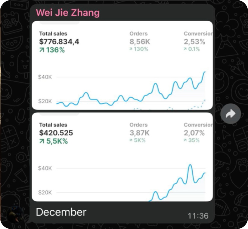 Mijn recorddag ligt op $70.000 omzet en mijn beste maand op $1,5 miljoen. Maar voor mij draait het niet alleen om pieken of snelle resultaten. Het belangrijkste is dat een store goed staat, winstgevend is en door kan blijven groeien.